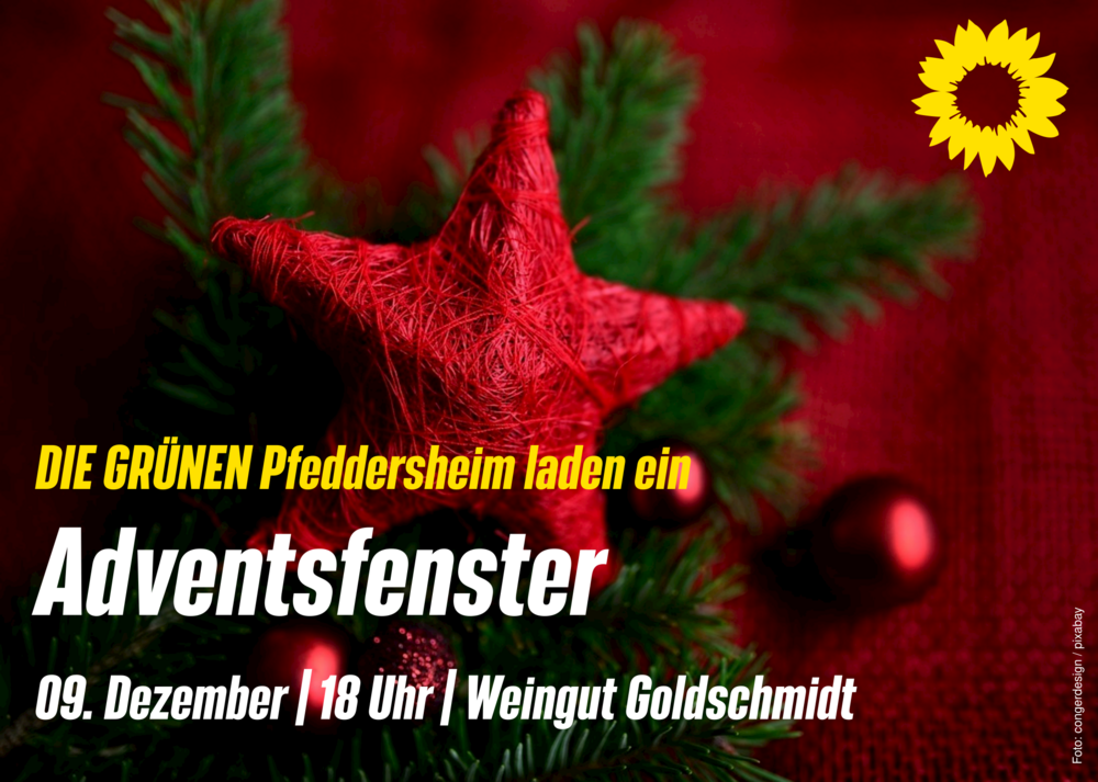 Ab dem 01.12. wird jeden Tag in Pfeddersheim ein Türchen geöffnet. BÜNDNIS 90/DIE GRÜNEN Pfeddersheim, der BUND Worms und das Weingut Goldschmidt in Pfeddersheim veranstalten gemeinsam das Adventsfenster am 09.12.2022 und laden um 18:00 Uhr in das Weingut Goldschmidt ein.