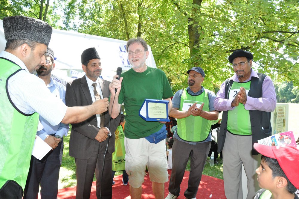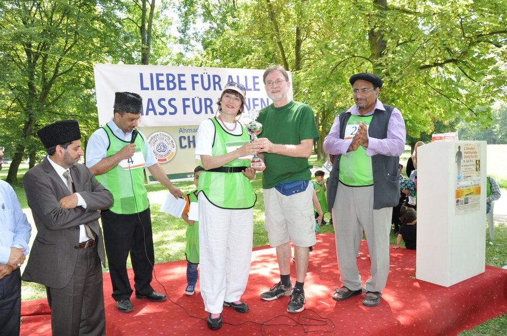 Als Vertreter der Stadt Worms überreichte der Grüne Stadtrat Kurt Lauer die Preise, da Schirmherr OB Kissel noch andere Verpflichtungen hatte. Den Pokal "1. Platz Männer Ü40" erwarb sich ein Läufer aus Somalia. Zu dem Spendenlauf waren auch Flüchtlinge eingeladen. Sie brauchten kein Startgeld zu zahlen und wurden von den Ahmadiyyas mit Essen und Trinken bewirtet.