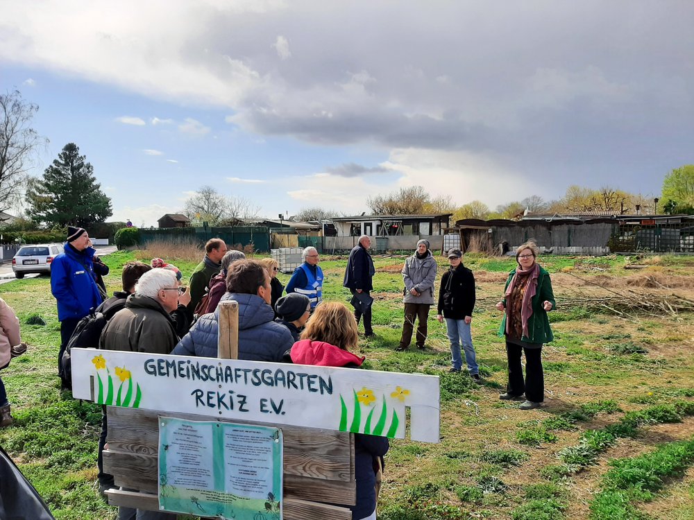Zum Abschluss des Rundgangs besichtigten wir noch den Gemeinschaftsgarten des Rekiz e.V., der sich, wie die Kleingartenanlage Mondschein 1935 e.V. ebenfalls im Plangebiet des Gewerbegebietes befindet und einer zukünftigen Bebauung weichen müssten.