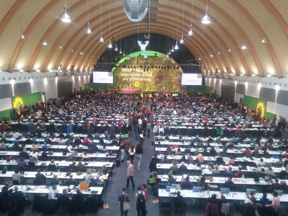 Etwa 800 Delegierte der Bündnisgrünen füllten drei Tage die große Halle in Bielefeld und die Vertreter aus den rheinland-pfälzer Kreisverbänden saßen in der Nähe der Journalisten und konnten so direkt das große Medieninteresse mit vielen Interviews der großen Radio- und TV-Sender beobachten. Nebenan fanden sich in einer Ausstellung von Verbänden und Interessengruppen unter anderem auch Stände der Telekom, der Post und auch erstmals der Stand des Arbeitgeberverbandes Gesamtmetall.