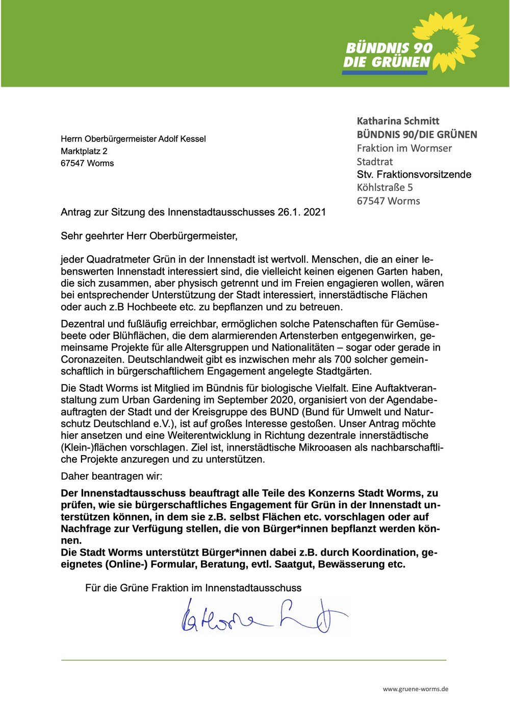 Unser Antrag im Innenstadtausschuss möchte diese Impulse in die Innenstadt holen und prüfen lassen, wie die Stadt Worms dort Urban Gardening unterstützen kann.