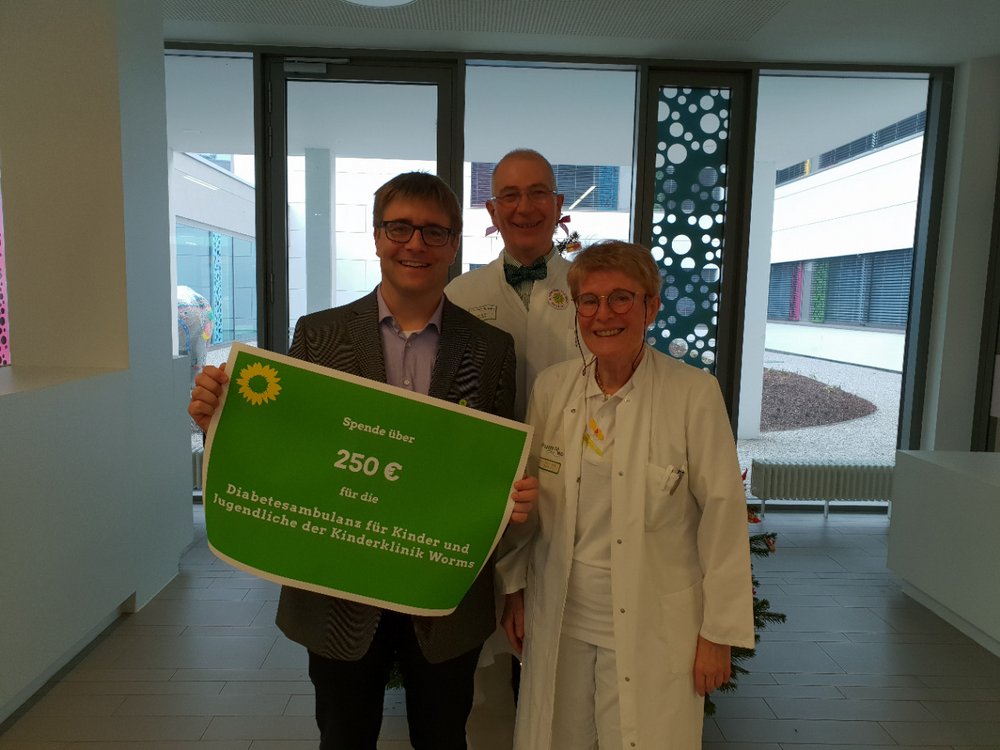 Patrick Obenauer überreicht Frau Dr. Engler-Schmidt für ihre Ambulanz für Kinder mit Diabetes mellitus einen Scheck über 250 Euro. "Der beeindruckende Einsatz von Frau Dr. Engler-Schmidt für ihre Patienten hat meinen größten Respekt!"