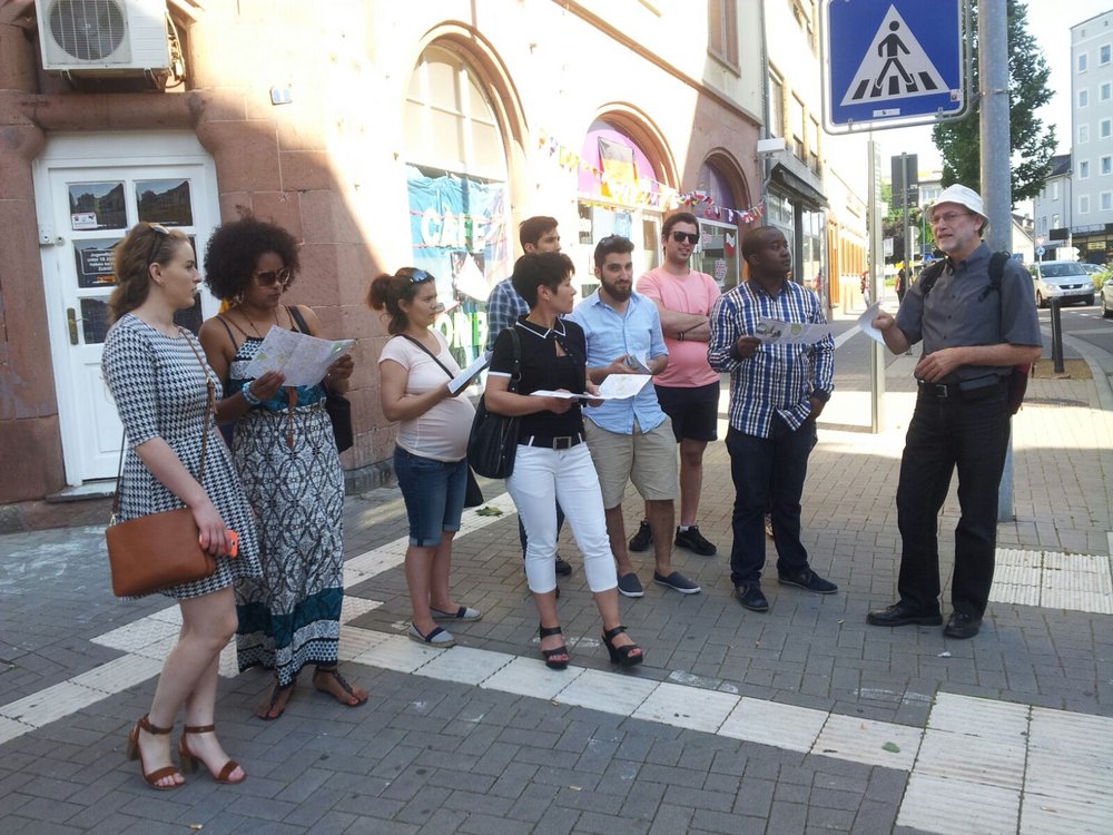 Kurt Lauer, Grüner Stadtrat und in der Migrations- und Flüchtlingsarbeit engagiert, führte die Gruppe durch Worms. Er informierte über Geschichte, Kultur, Gesellschaft und Politik der Stadt, wozu natürlich auch ein Besuch im Rathaus gehört.